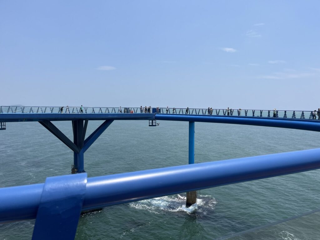 スカイカプセルは、尾浦(ミポ)駅から、青沙浦(チョンサポ)駅に向かうときに海側の線路を走行するので、より海に近く遮るものなく海を見渡せます。