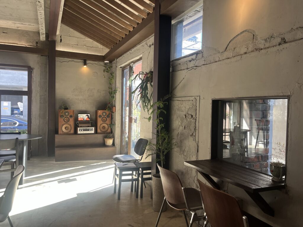 広安里ビーチから数分歩いたところにある、落ち着いた雰囲気のカフェ。