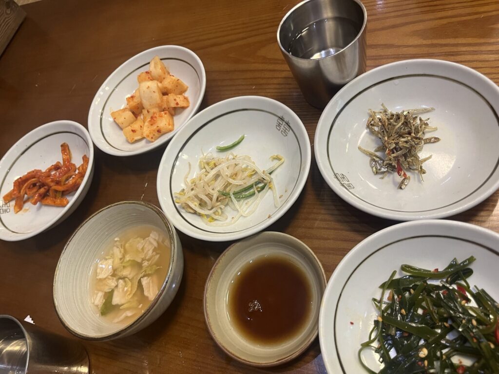 席について注文すると、このようにおかずが運ばれてきます。