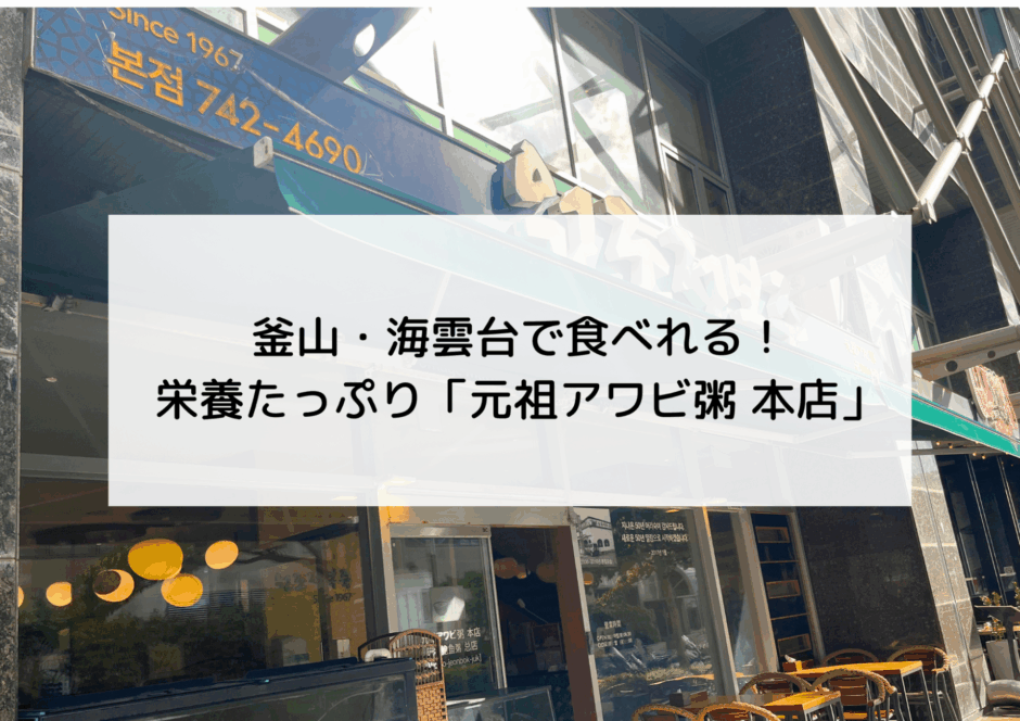 海雲台海水浴場から歩いてすぐのところある「元祖アワビ粥 本店(원조전복죽 본점)」は、新鮮なアワビを使った本格的なおかゆが食べられると人気のお店です。